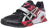 ASICS Men's Lift Trainer Running Shoe,Black/Silver/Red,11 M US - Inspired by professional weightlifting shoes, the ASICS Lift TrainerTM sports shoe provides the structure and support while lifting that regular athletic shoes don't offer. The heel of this men's athletic shoe has been raised, while the forefoot height is decreased, putting the body in correct lifting motion and providing the best opportunity for explosiveness and power throughout the lift. Medial and lateral support is achieved through the midsole outriggers and the mid-foot strap provides stab
